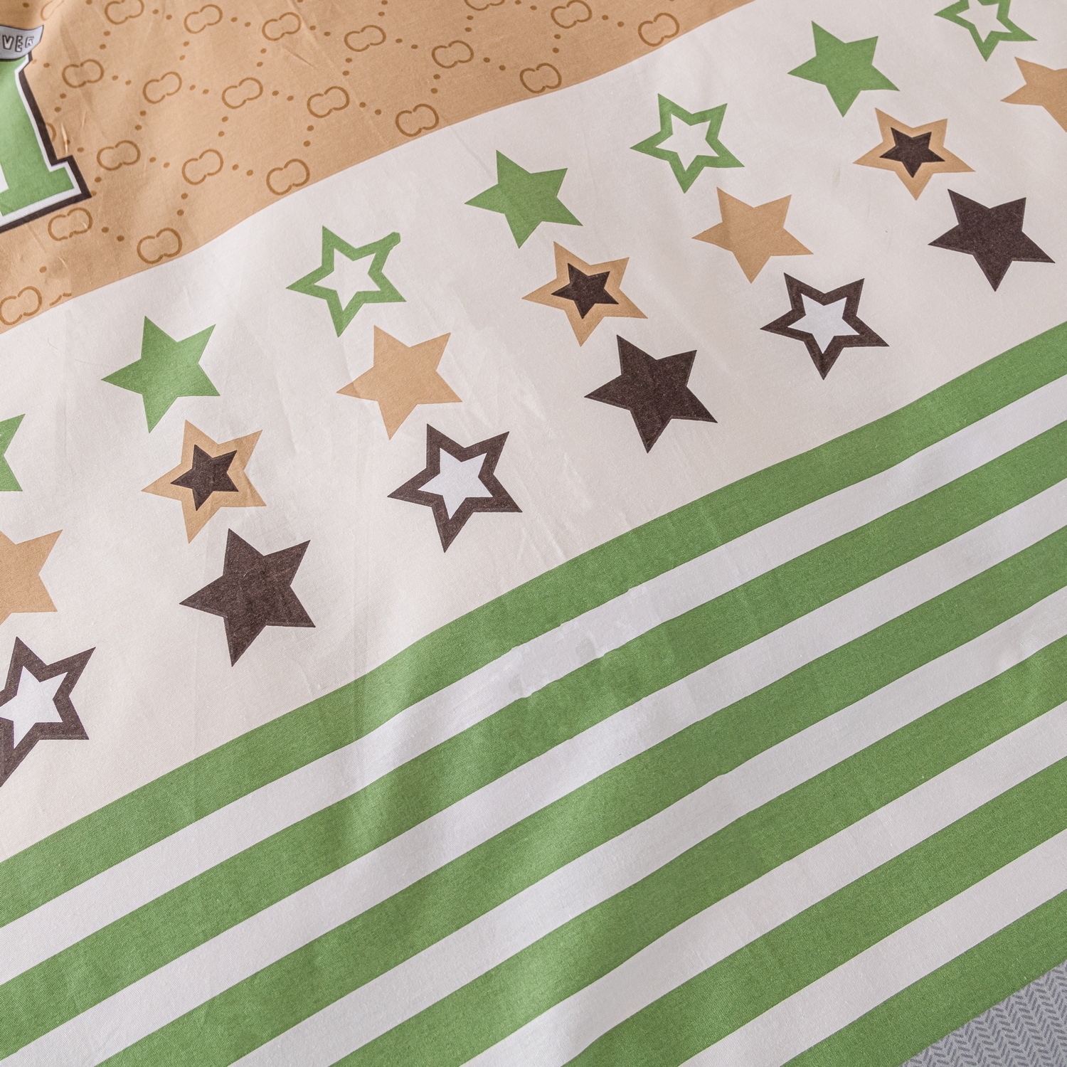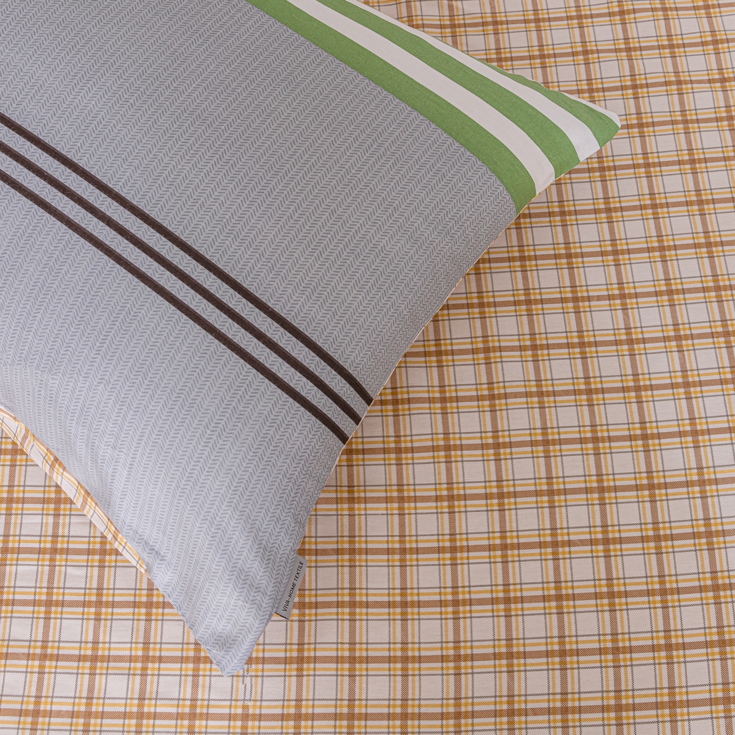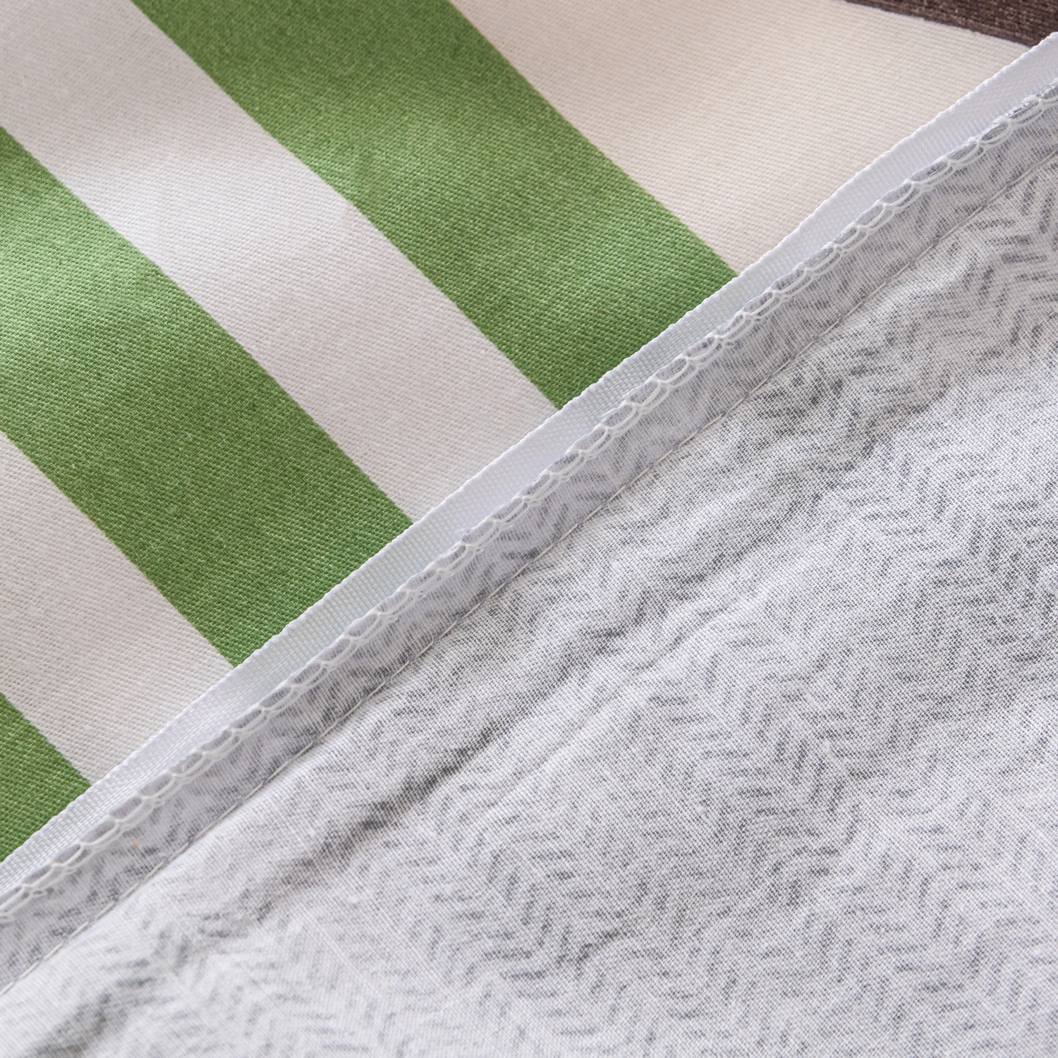 Ткань компаньон: Наволочки с разных сторон разной расцветки, пододеяльник с разных сторон разного цвета, простыня такого же цвета, как низ пододеяльника.