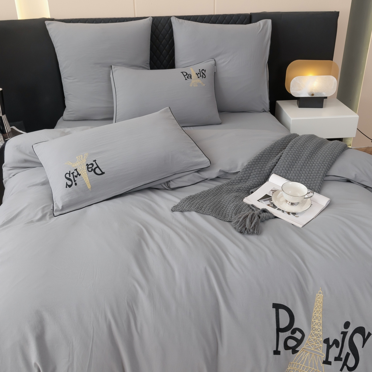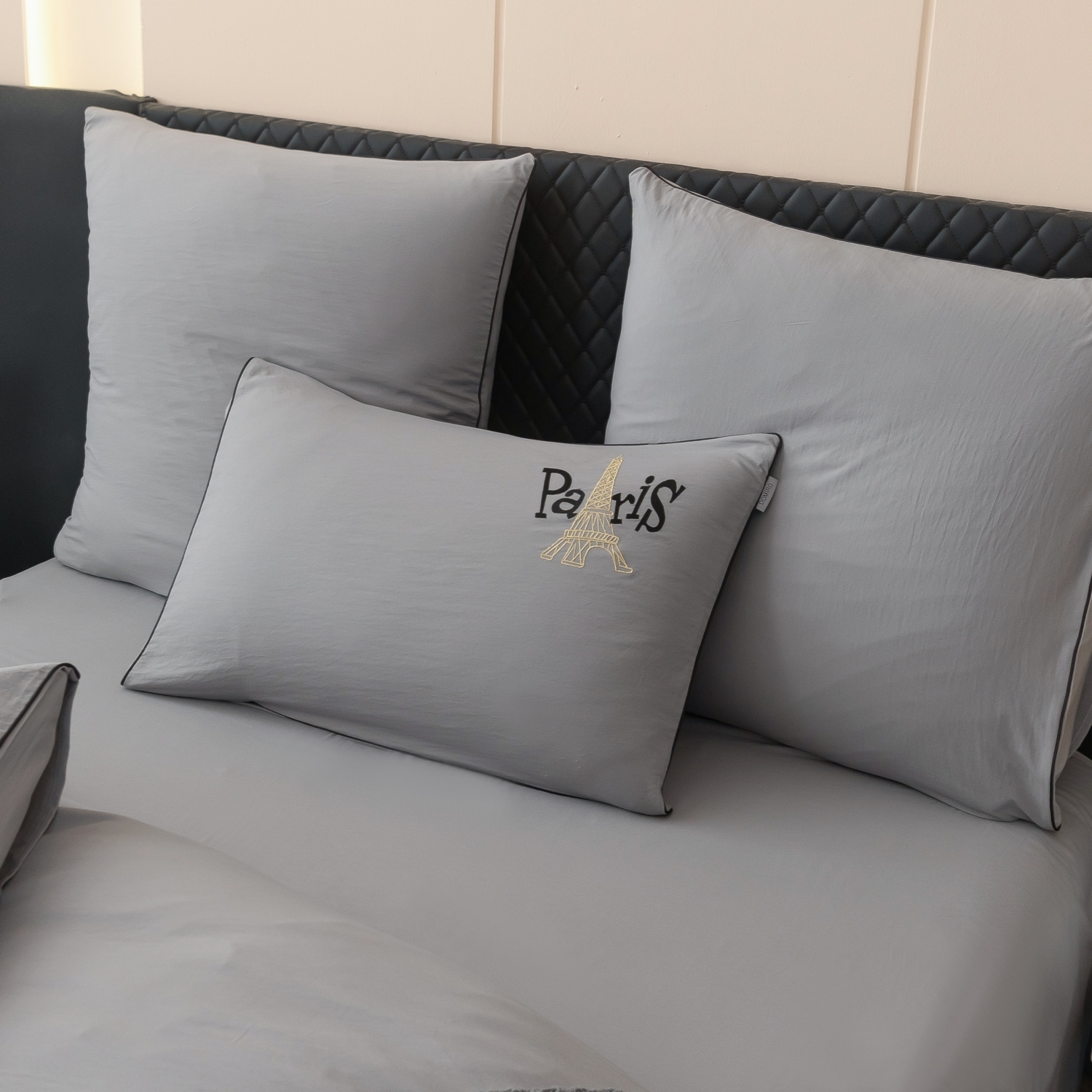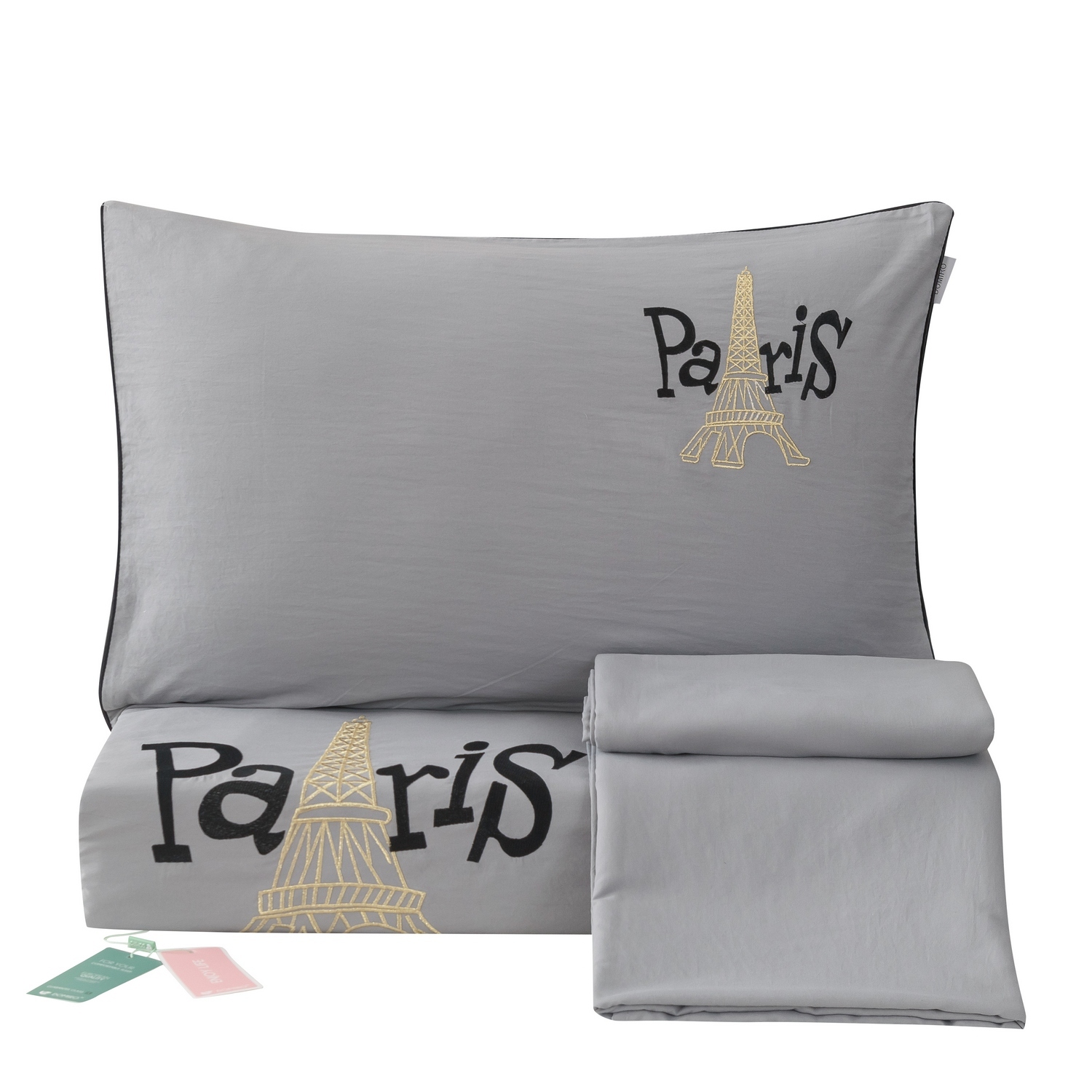 Дизайн дополняет элегантная вышивка с изображением Эйфелевой башни и надписью Paris/Париж, а изящный кант по периметру подчёркивает утончённость каждого комплекта.