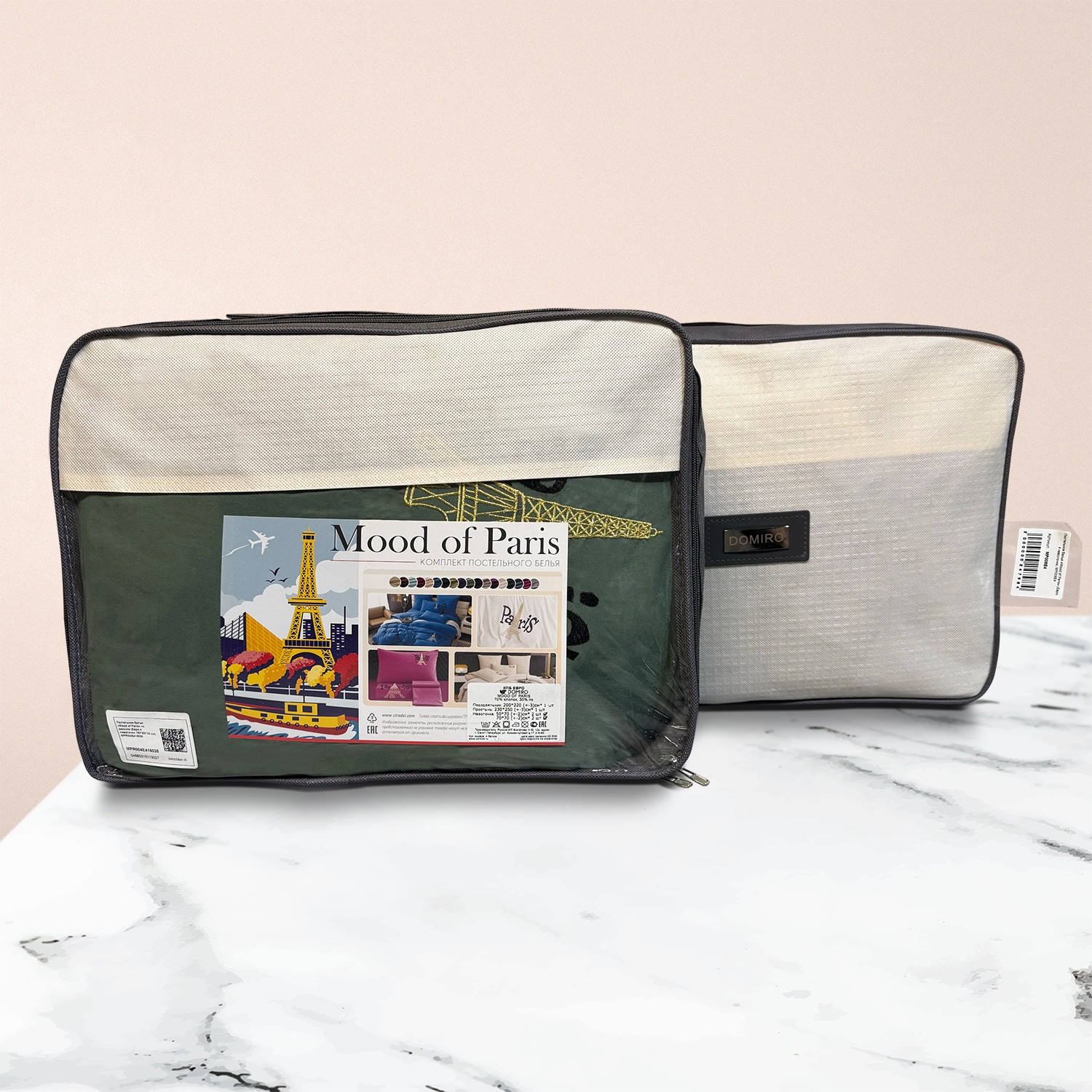 Дизайн дополняет элегантная вышивка с изображением Эйфелевой башни и надписью Paris/Париж, а изящный кант по периметру подчёркивает утончённость каждого комплекта.