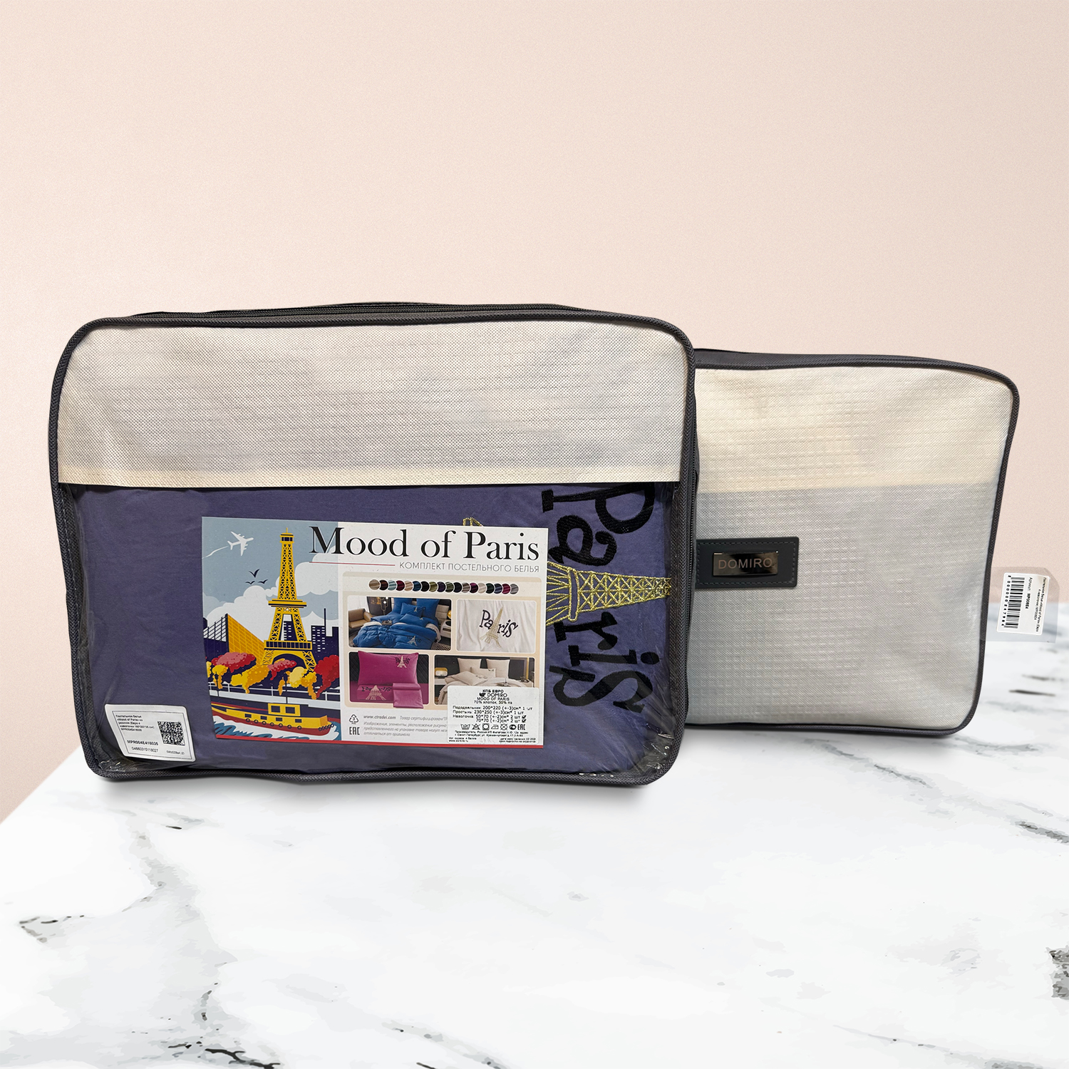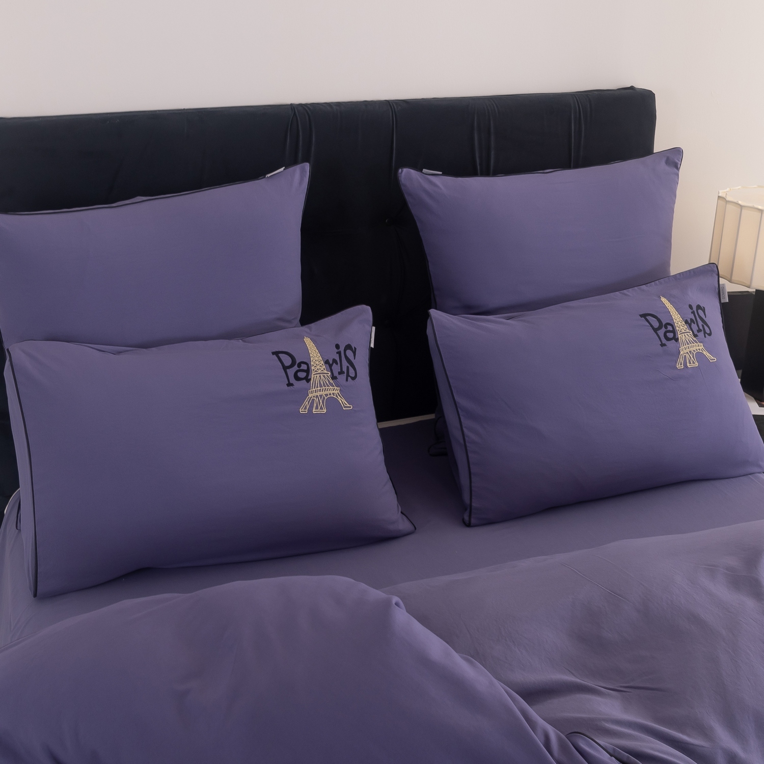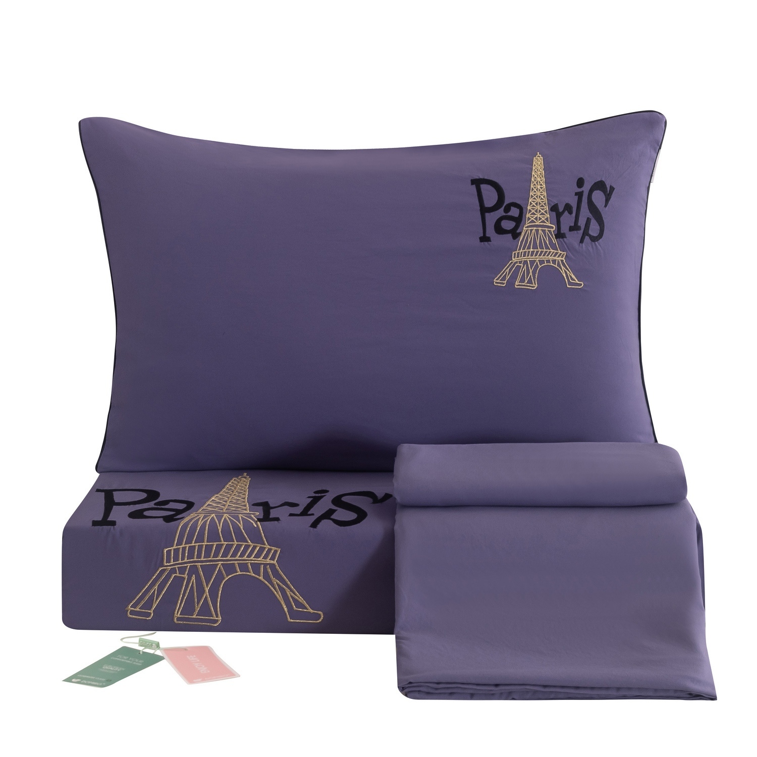 Дизайн дополняет элегантная вышивка с изображением Эйфелевой башни и надписью Paris/Париж, а изящный кант по периметру подчёркивает утончённость каждого комплекта.