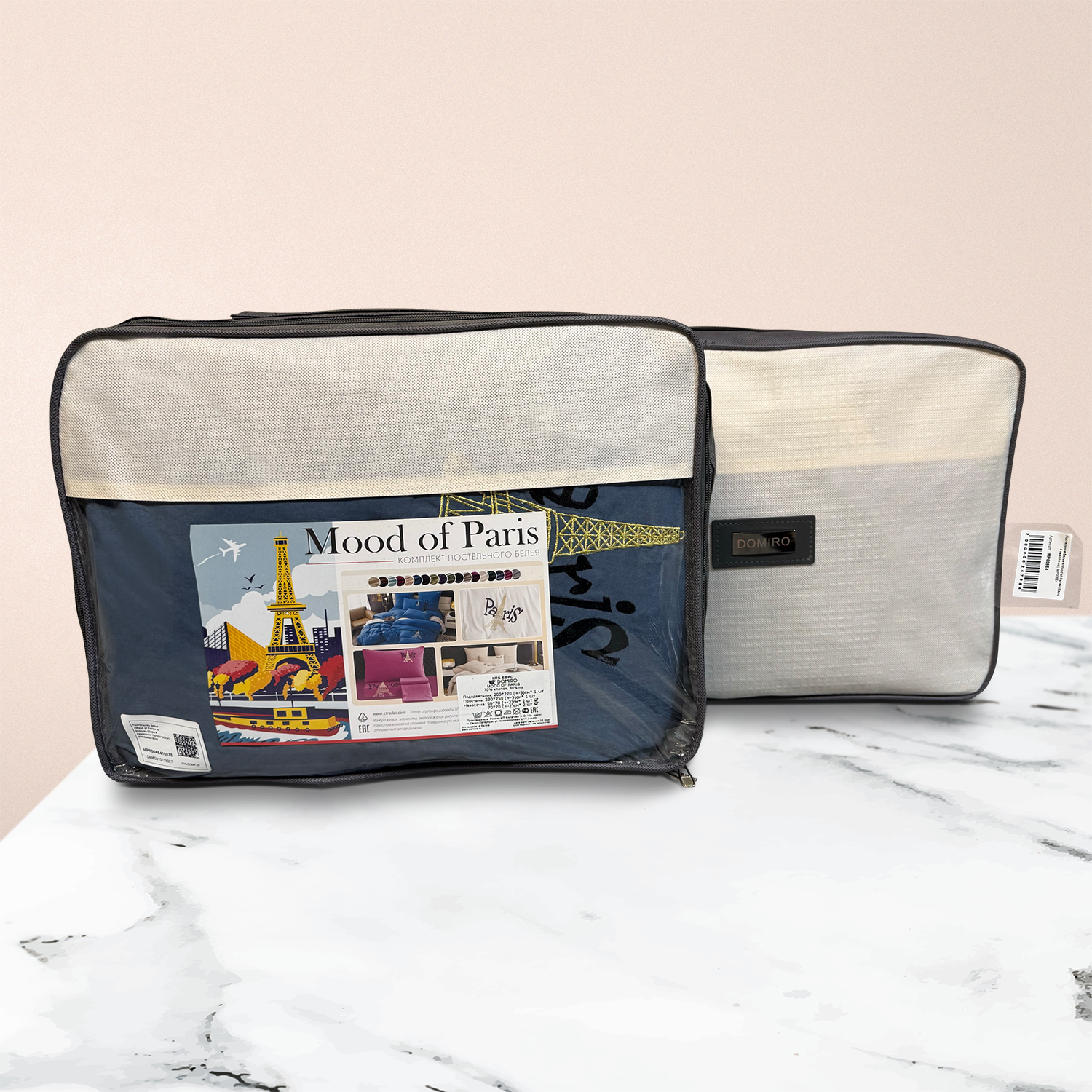Дизайн дополняет элегантная вышивка с изображением Эйфелевой башни и надписью Paris/Париж, а изящный кант по периметру подчёркивает утончённость каждого комплекта.