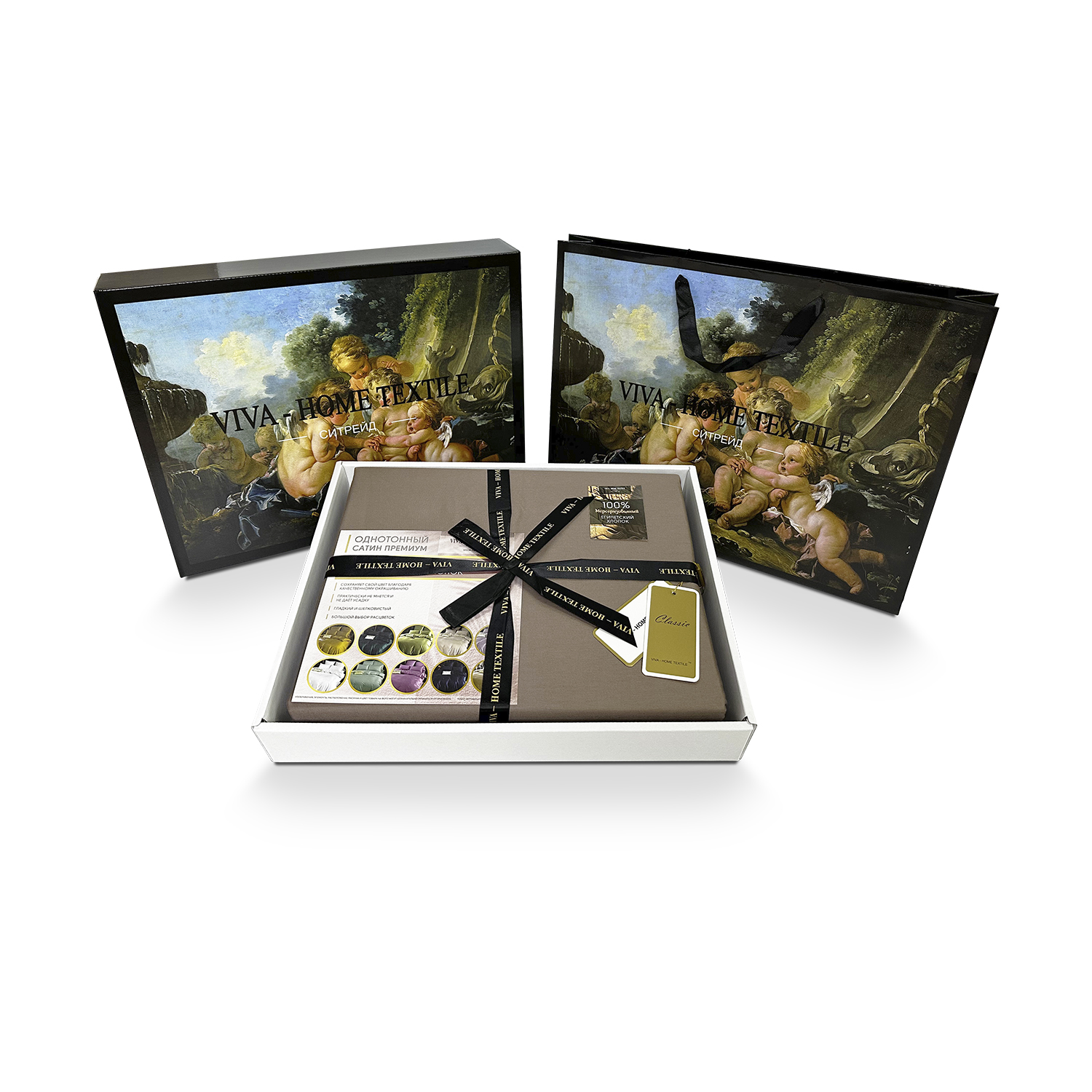 Комплекты из данной коллекции поставляются в красивой подарочной упаковке и непременно порадуют Вас или Ваших близких своим роскошным видом и приятными тактильными свойствами.