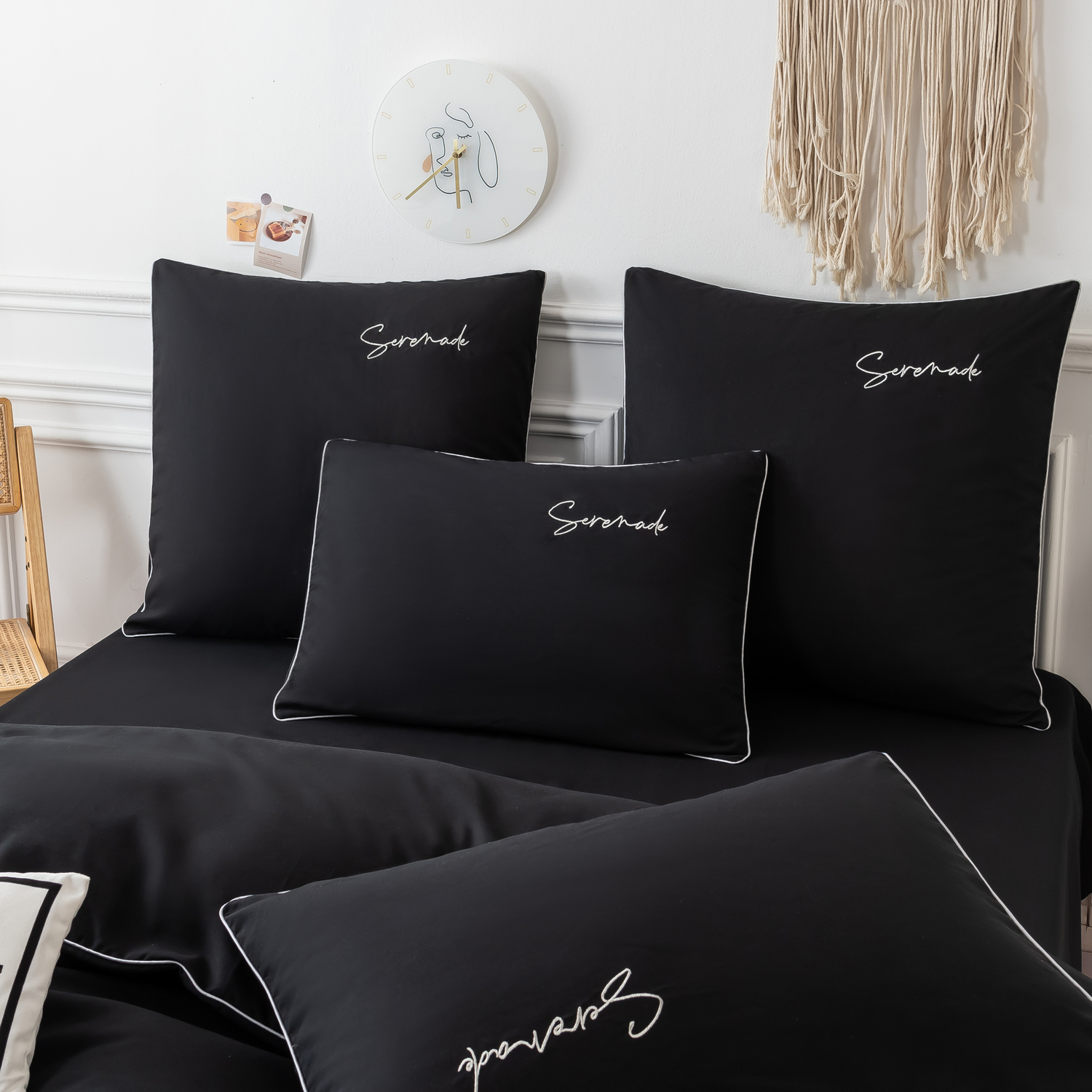 Пододеяльник и наволочки: Украшены вышивкой и кантом по периметру