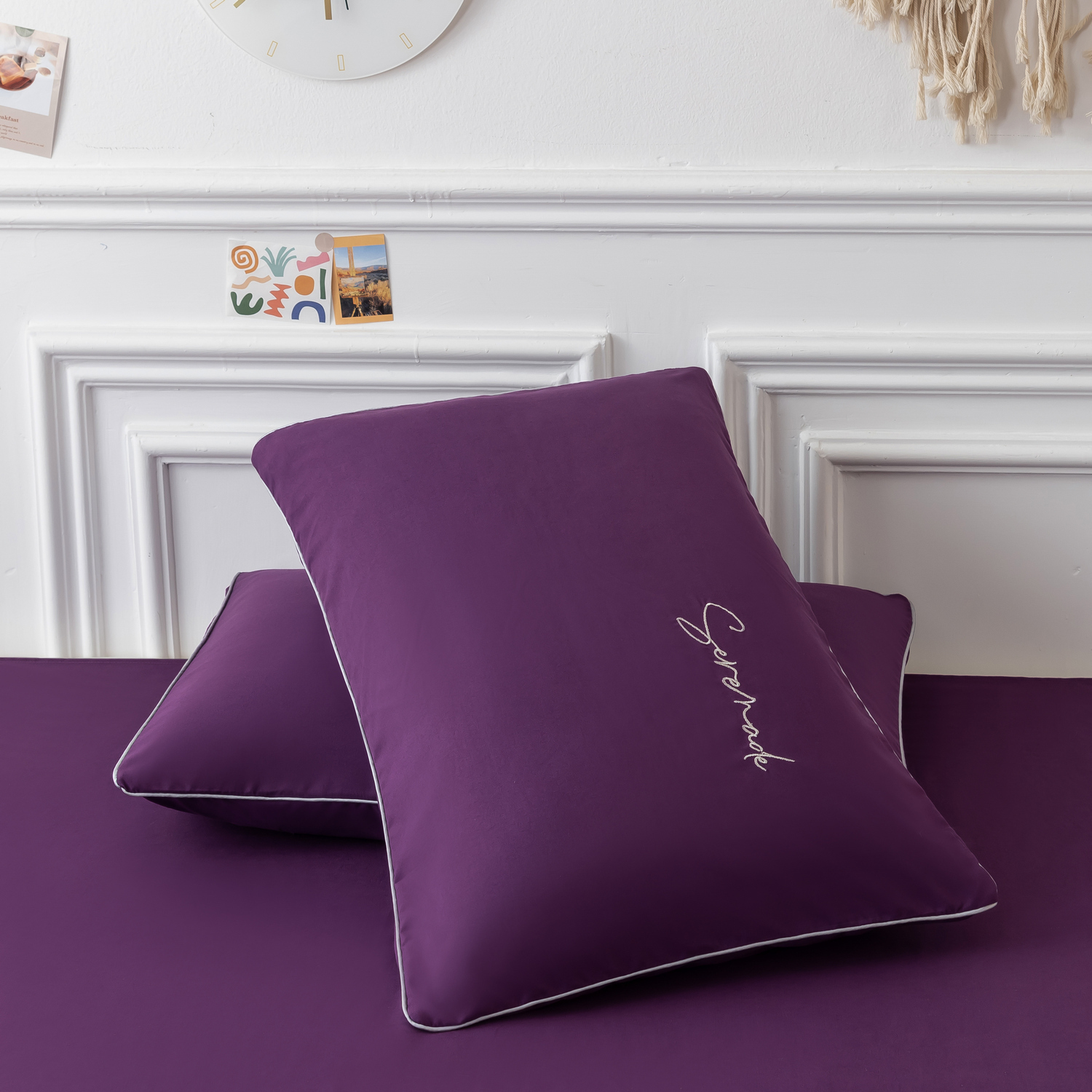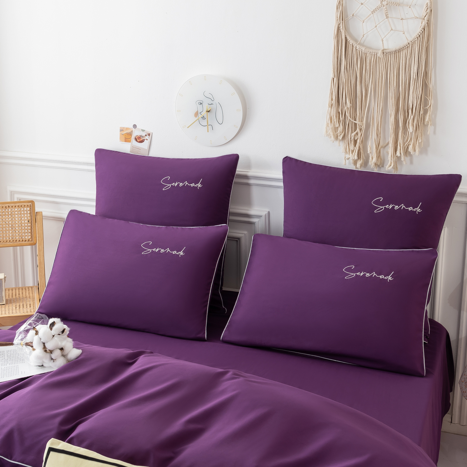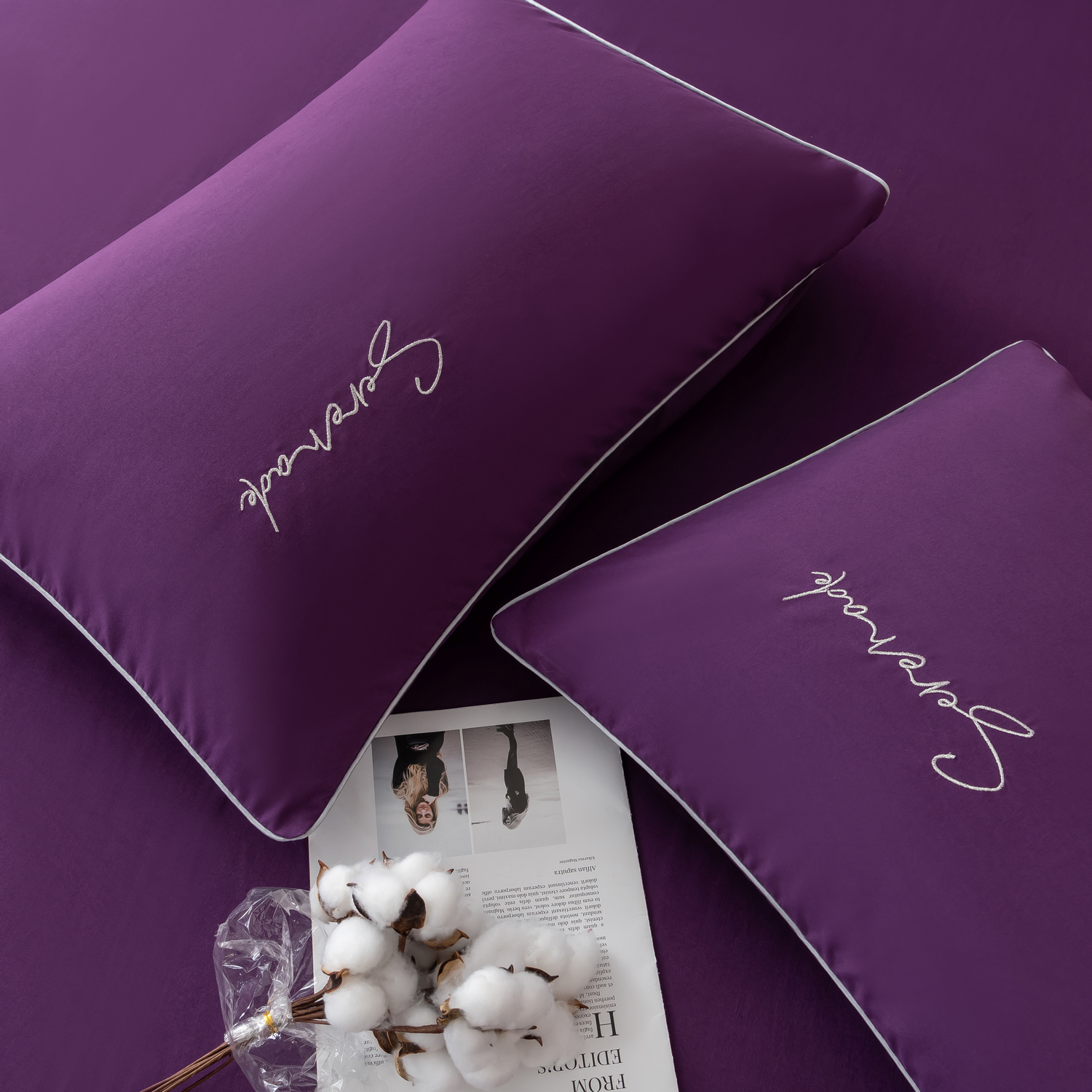 Пододеяльник и наволочки: Украшены вышивкой и кантом по периметру