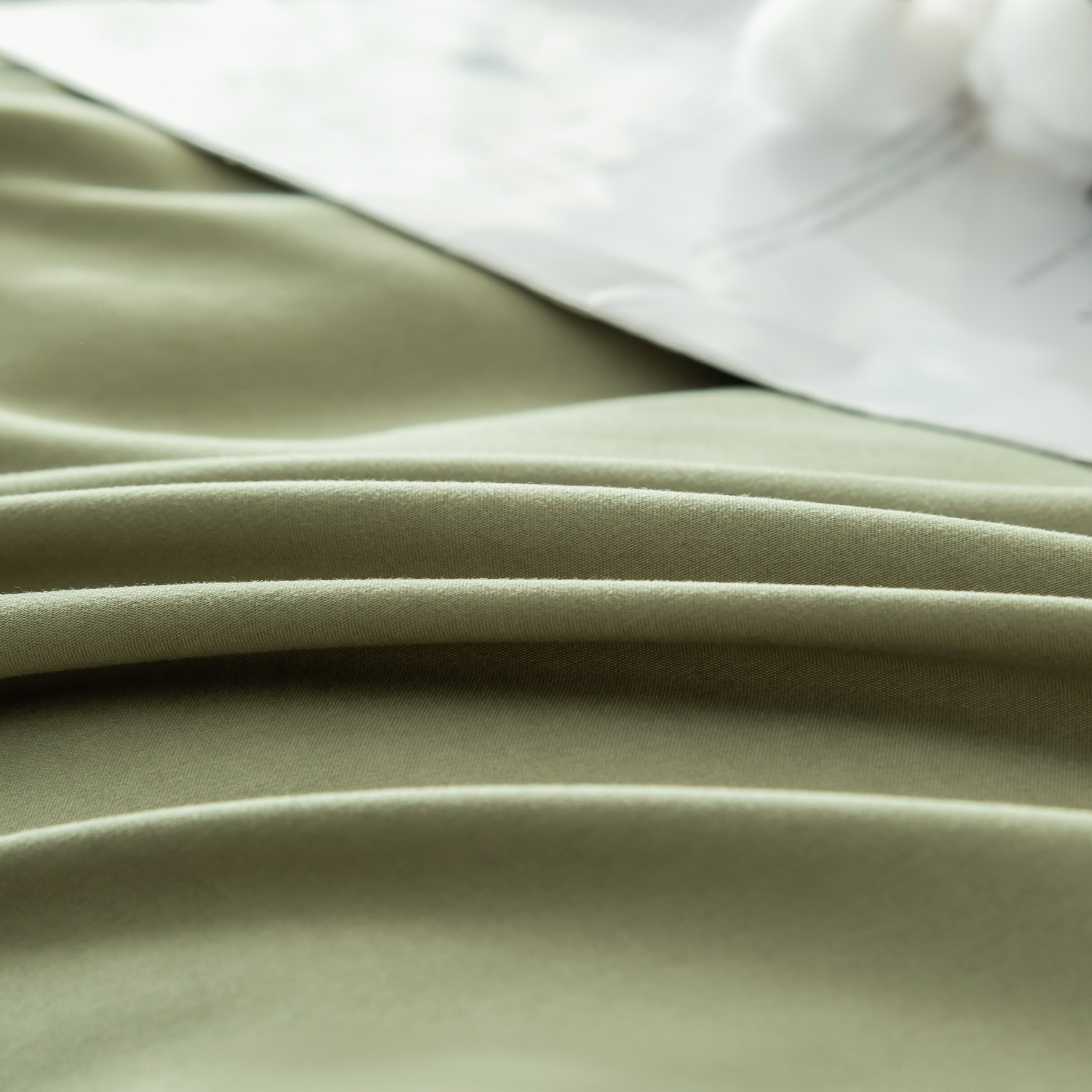 Белье изготовлено из сатина, смесовой ткани. Благодаря преобладанию хлопка в составе, ткань прекрасно пропускает воздух, создавая оптимальный микроклимат в постели. Смесовая ткань позволяет улучшить свойства белья: ткань быстро сохнет, практически не мнётся, не линяет, не садится после стирки и срок службы такого белья гораздо выше, чем у постельных принадлежностей из чистого хлопка.