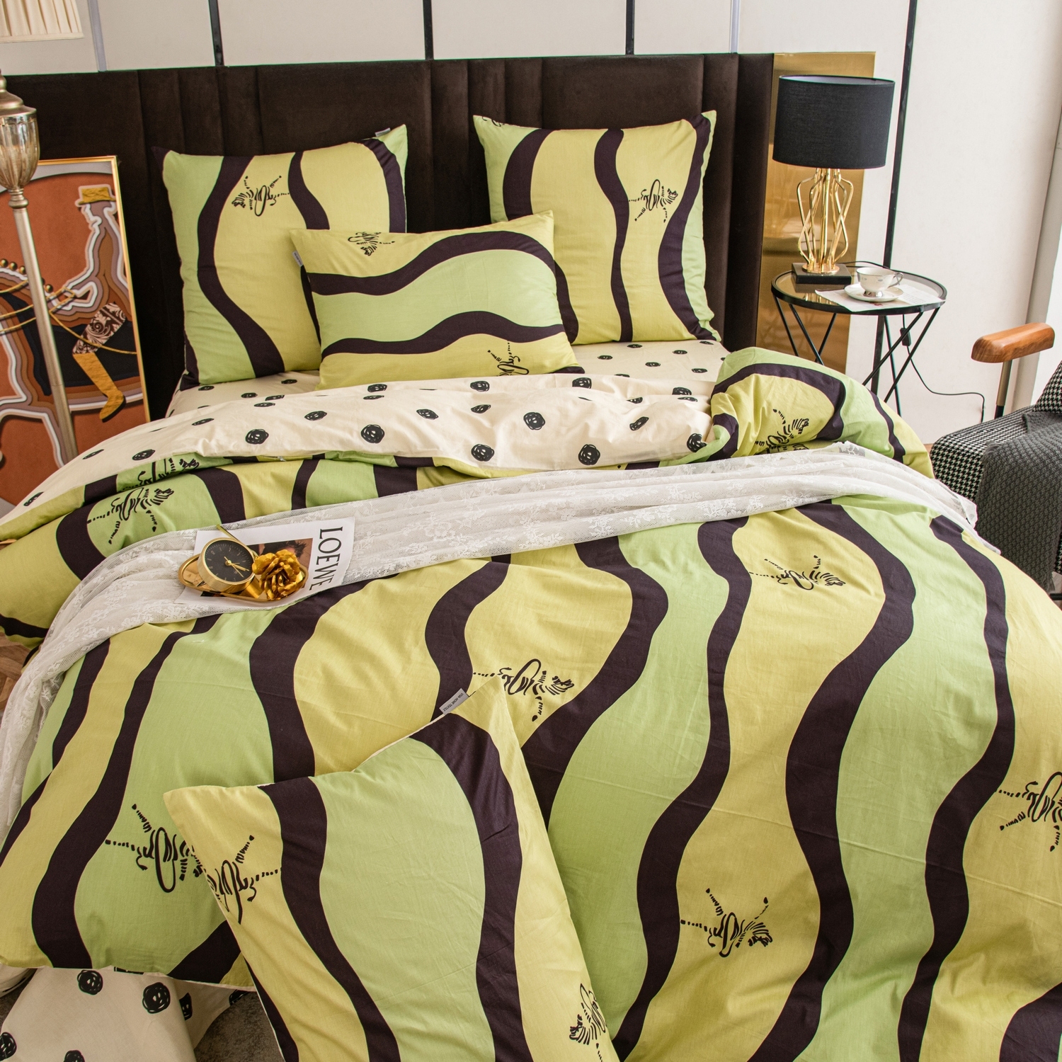 Ткань компаньон: Наволочки с разных сторон разной расцветки, пододеяльник с разных сторон разного цвета, простыня такого же цвета, как низ пододеяльника.