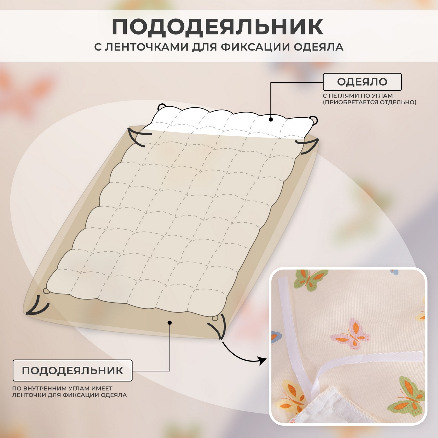 Для более комфортного использования пододеяльник и наволочки снабжены скрытыми молниями.