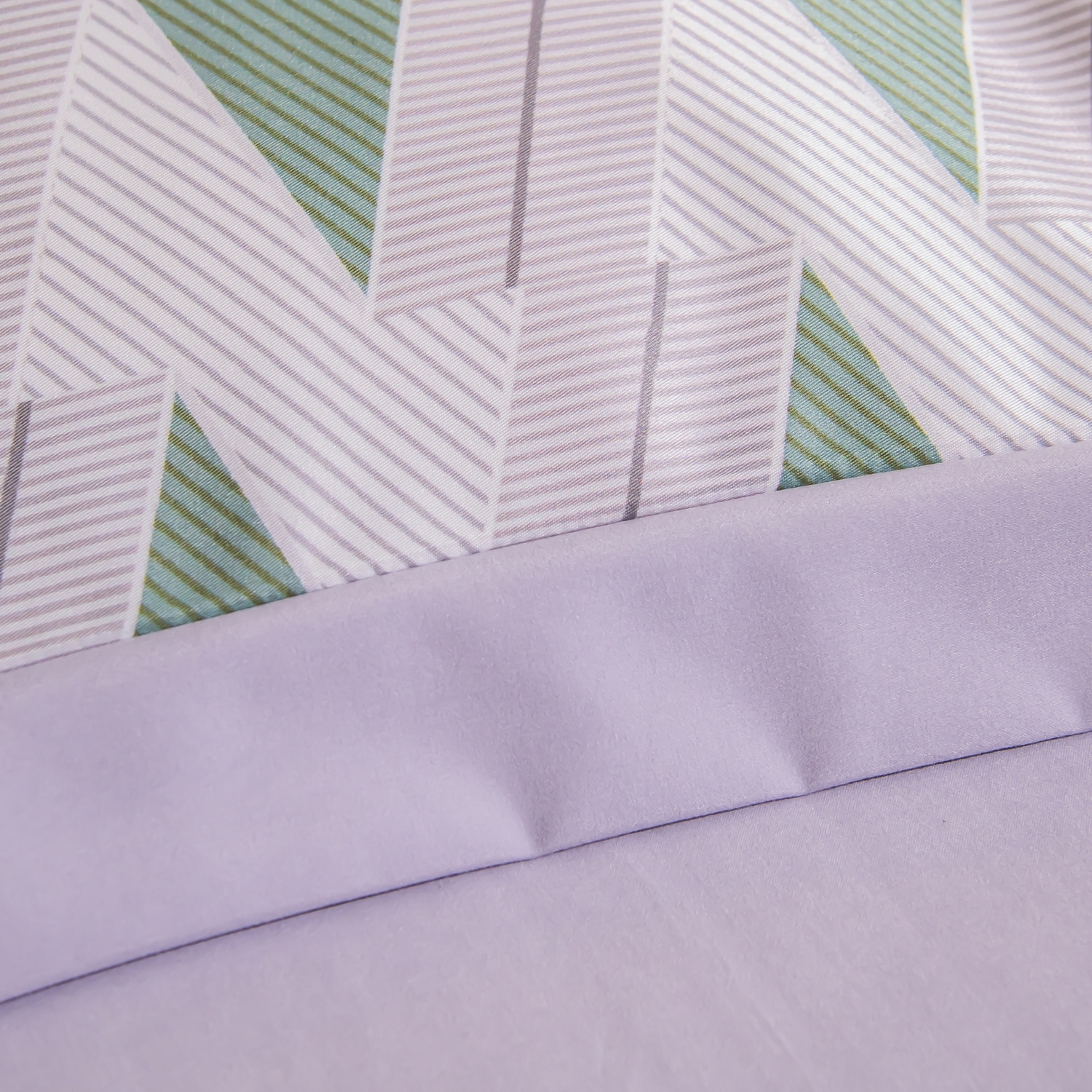 Ткань компаньон: Верх пододеяльника - мерсеризованный сатин, низ пододеяльника - сатин. Наволочки 50*70 см и 70*70 см с разных сторон разной расцветки. Пододеяльник с разных сторон разного цвета. Простыня однотонная такого же цвета, как низ пододеяльника.