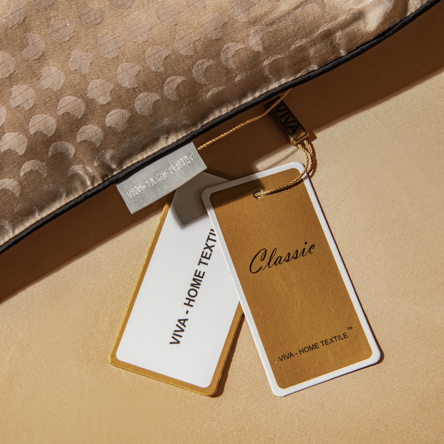 - Наволочки 50x70 выполнены с разных сторон из разных тканей: лицевая сторона - жаккард с золотыми нитями, оборотная - гладкий сатин.
