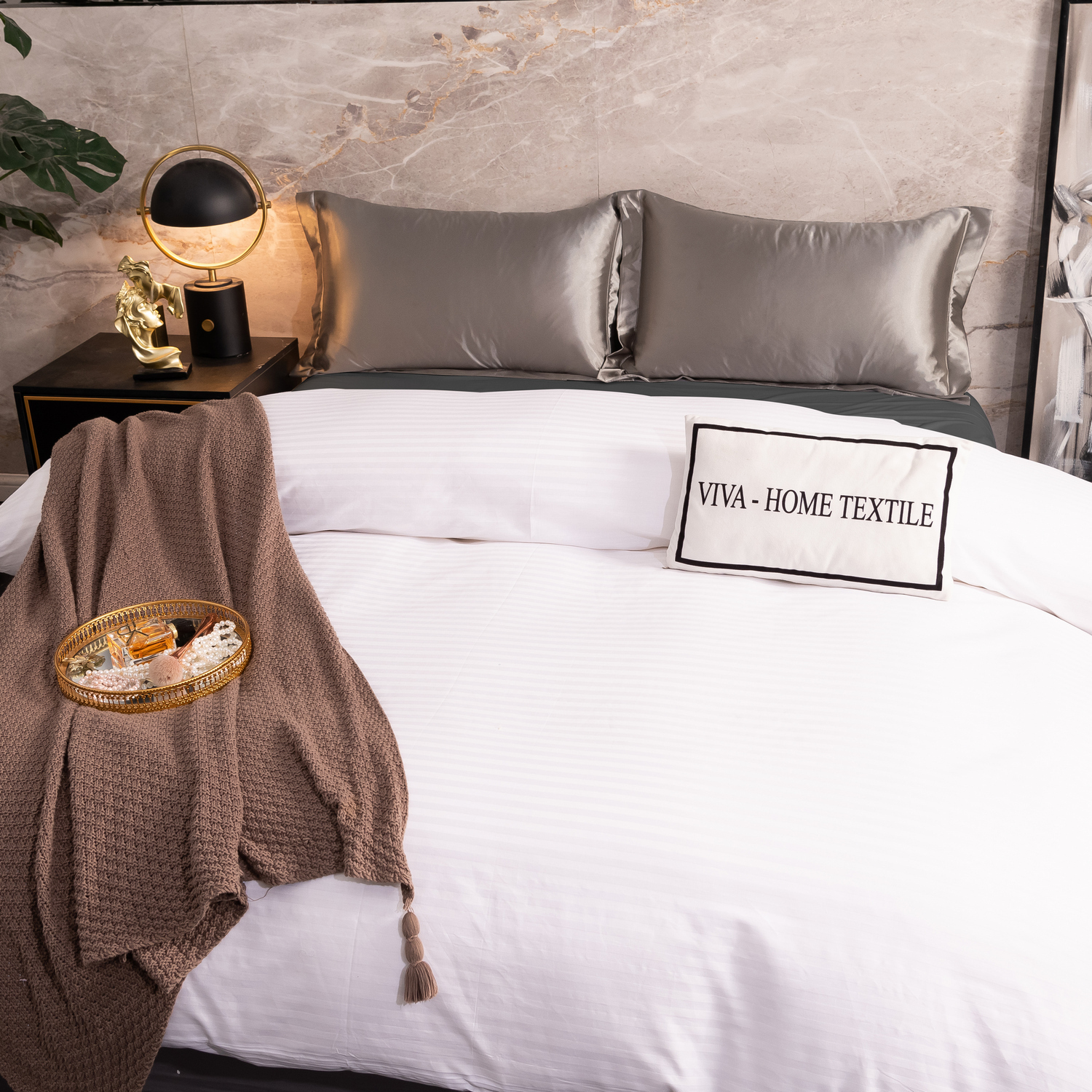Постельные принадлежности из Страйп Сатина пользуются популярностью благодаря минималистическому стилю, напоминающему белье в номере дорогой гостиницы.