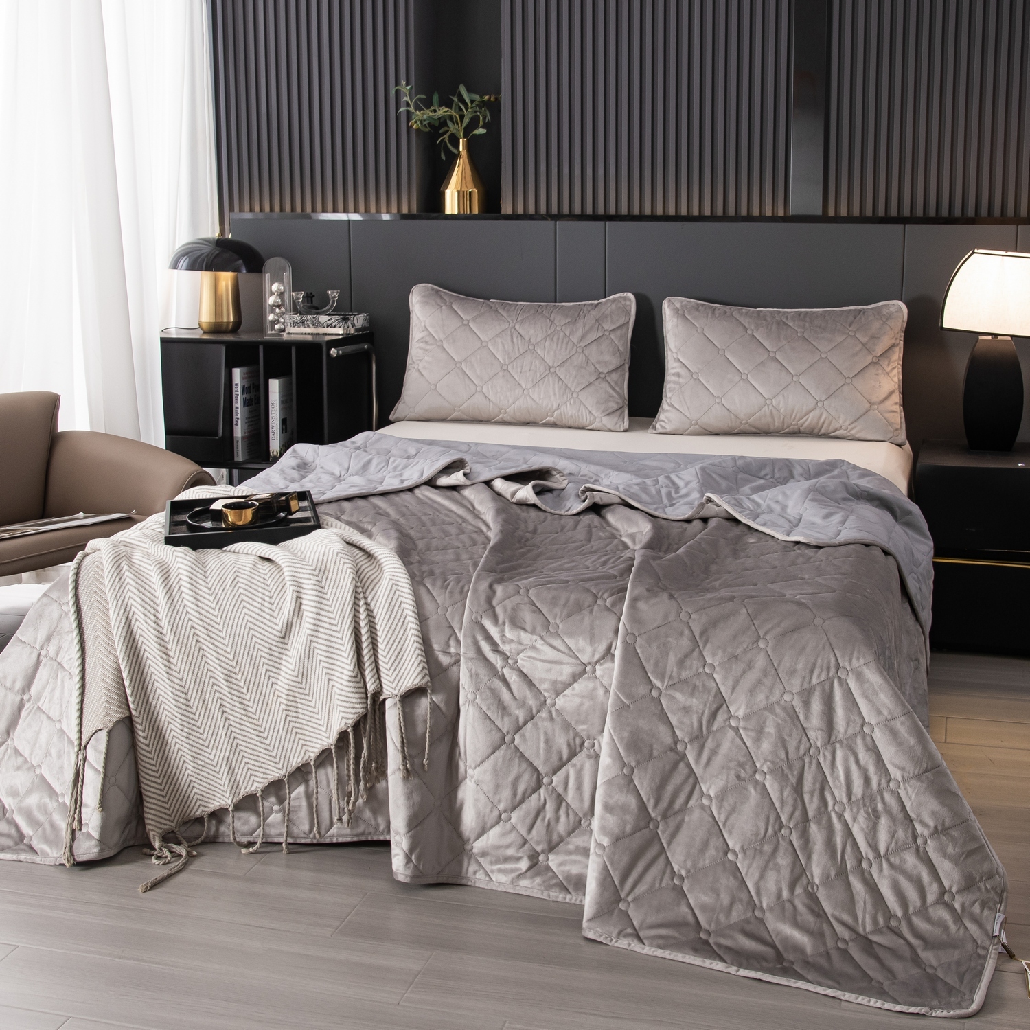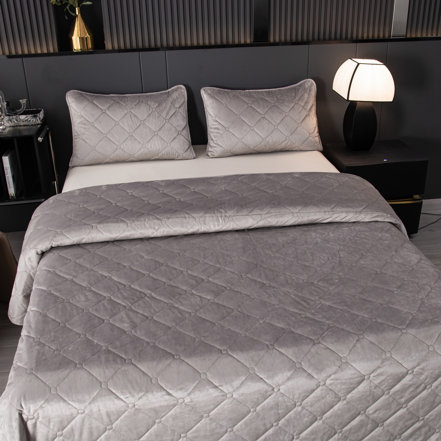 Велюровое покрывало с ромбовидной стежкой: мягкая текстура велюра и приятная цветовая гамма станут прекрасным дополнением интерьера вашей спальни. Кровать с таким покрывалом будет выглядеть стильно и дорого.