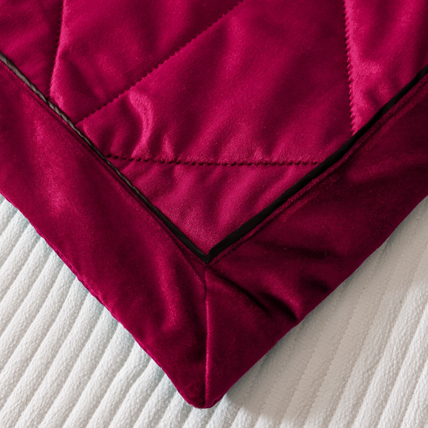Геометрический узор на покрывале выполнен с использованием термостежки, что придаёт изделию особую изысканность и подчёркивает элегантность интерьера.
